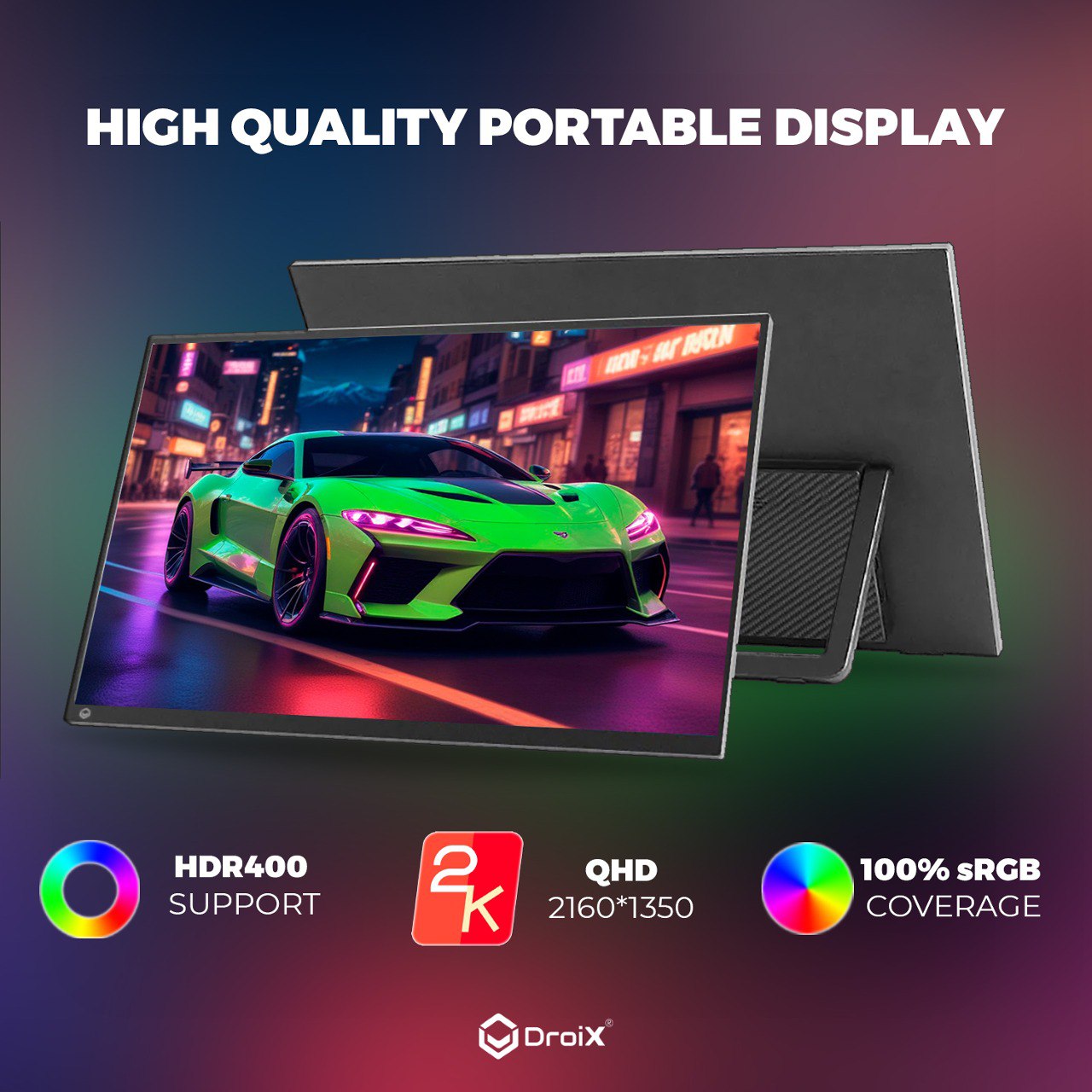 Image of DroiX Portable Monitor 13 inch 2K Ultra Thin lightweight and portable