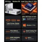 The GMKTec NucBox K9 stands at the forefront of mini PC technology, blending cutting-edge performance, sleek design, and unparalleled functionality. Whether you’re looking for a mini PC for home office use, a powerful yet compact business tool, or a versatile device for entertainment and gaming, the NucBox K9 delivers on all fronts. Embrace the future of computing with this energy-efficient, space-saving mini PC.