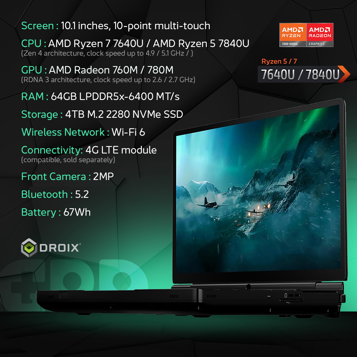 Or choose AMD Ryzen 5 7640U processor, armed with 6 cores and 12 threads, runs at a base clock of 3.5GHz and a boost clock of 4.9GHz,