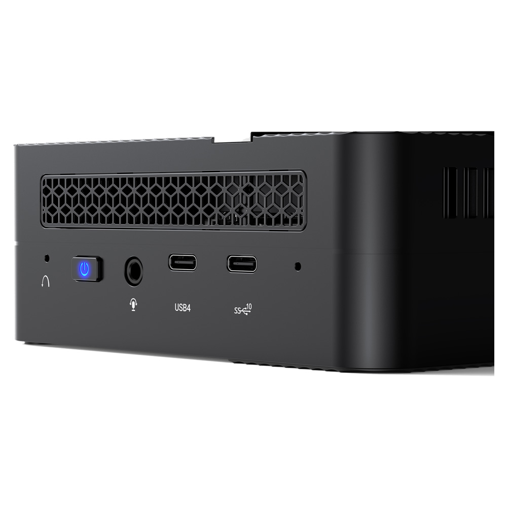 The two HDMI ports support dual displays up to 4K 60Hz or you can use the USB 4 Type-C with appropriate adaptor output for a single 8K 60Hz display. The USB 4 port found on the front of the UM690 can also be connected to an external GPU (eGPU) for even faster graphics performance! There are also 4 USB 3.2 generation 2 ports, and one additional USB 3.2 generation 2 Type-C port for connecting peripherals to the Ryzen mini PC.