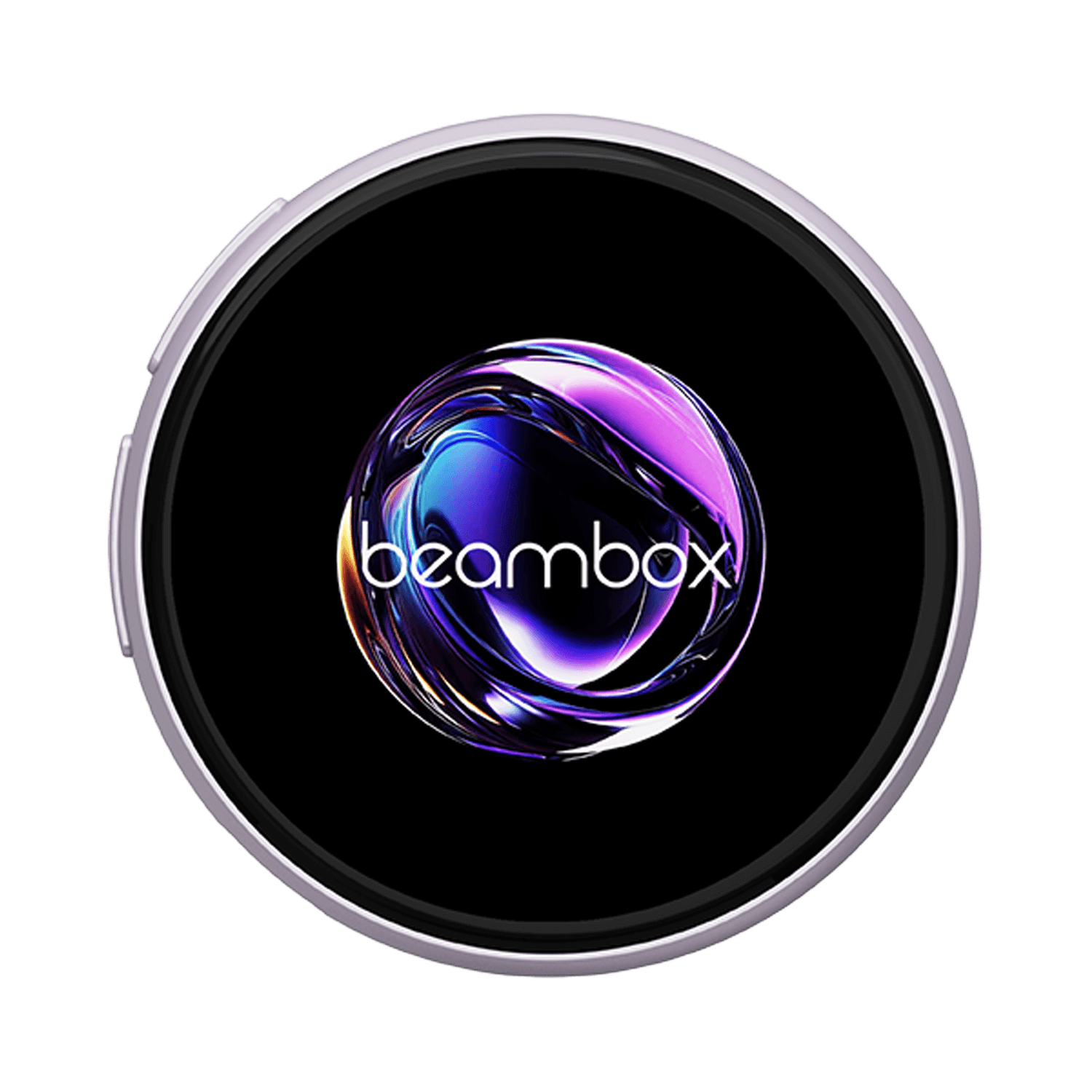 A circular badge or display framed by a light purplelavender colored metal ring The black display area shows a highly reflective swirling purple and NIKKO BADGE TS SLIVER IMAGE 1png A circular badge or display framed by a silver metal ring The black display area shows a highly reflective swirling purple and blue abstract orb with the white text beambox overlaid near the bottom The image is set against a dark green backgroundabstract orb with the white text beambox overlaid near the bottom The image is set against a dark green background