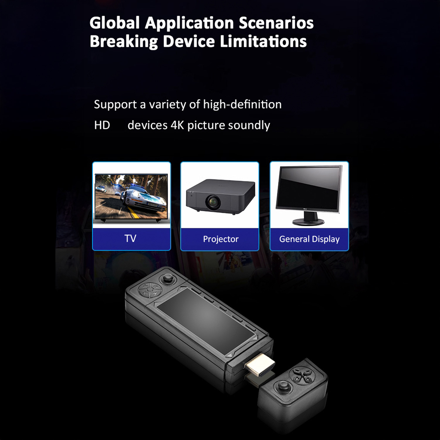 - User Experience – The game stick includes a 2.4GHz wireless connection for two controllers, allowing seamless multiplayer gameplay without cable clutter. An HDMI cable and power cable are also included, making setup fast and straightforward. The device is designed to be compact and portable, so users can easily bring it to gatherings or enjoy solo play at home.